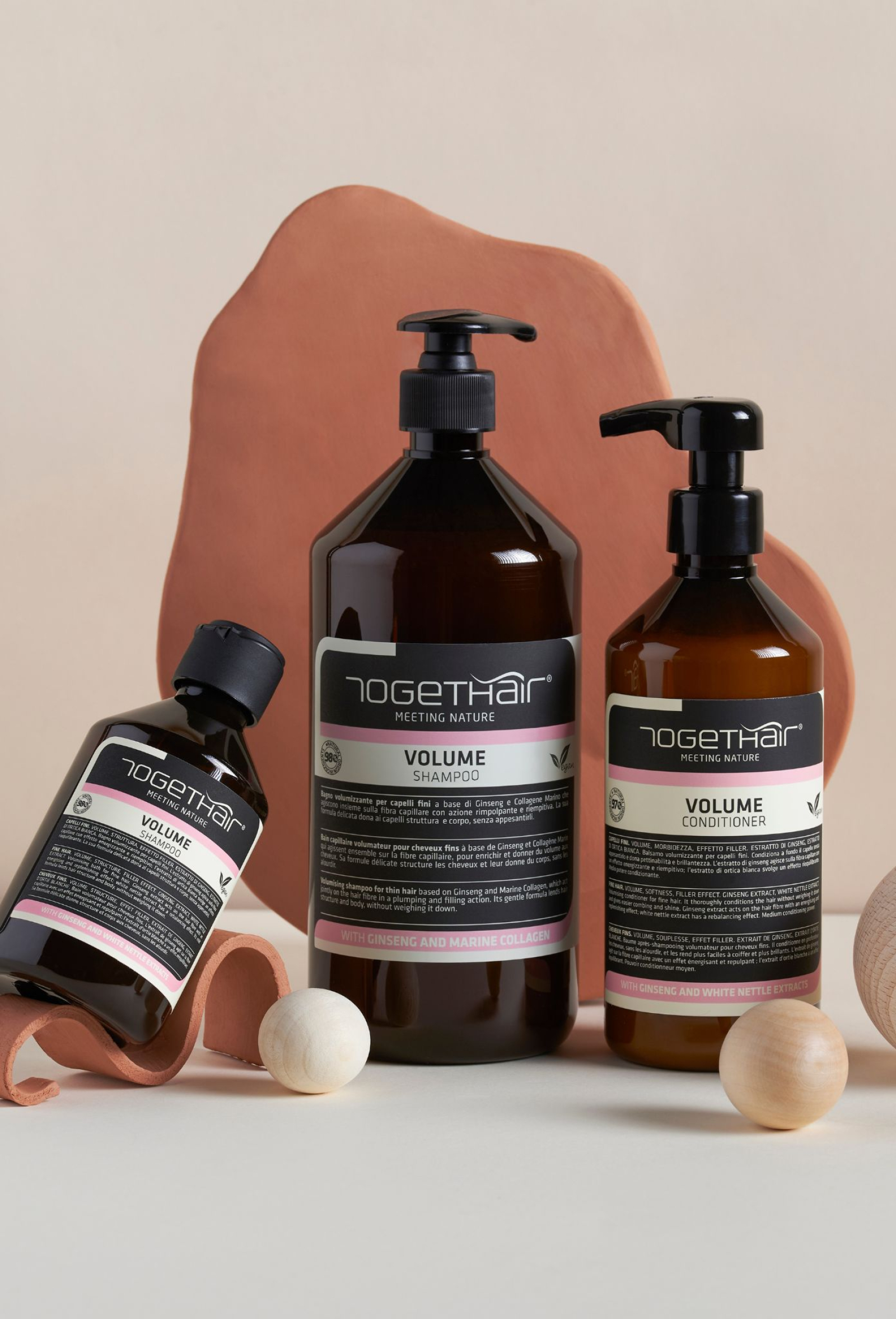 Balsam zwiększający objętość włosów cienkich na bazie wszechleku i kolagenu morskiego, które wspólnie oddziałują na włókno włosa, wypełniając go i rozszerzając.